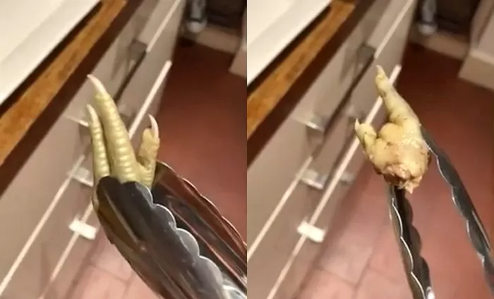 치킨의 가슴 부위 가이에 박혀 있던 닭발은 날카로운 발톱까지 그대로였다.