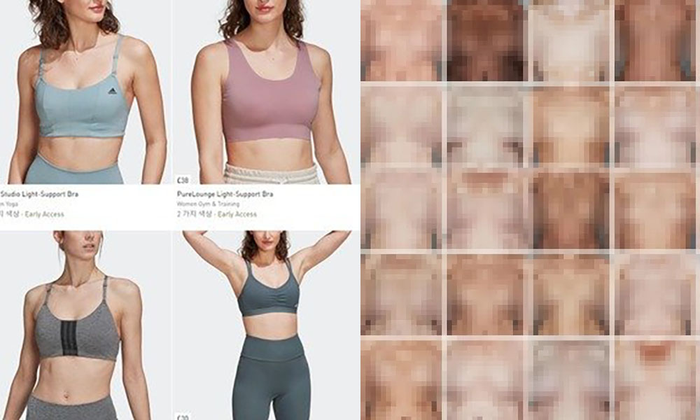 스포츠 브랜드 아디다스가 새로운 스포츠 브라 제품 출시를 알리면서 여성 25명의 맨가슴 사진을 올려 논란이다.