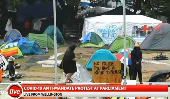 지난 8일 코로나19 규제에 반대하는 수백 명의 시위대가 수도 웰링턴 국회 앞 잔디 광장을 점거했습니다.