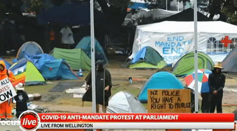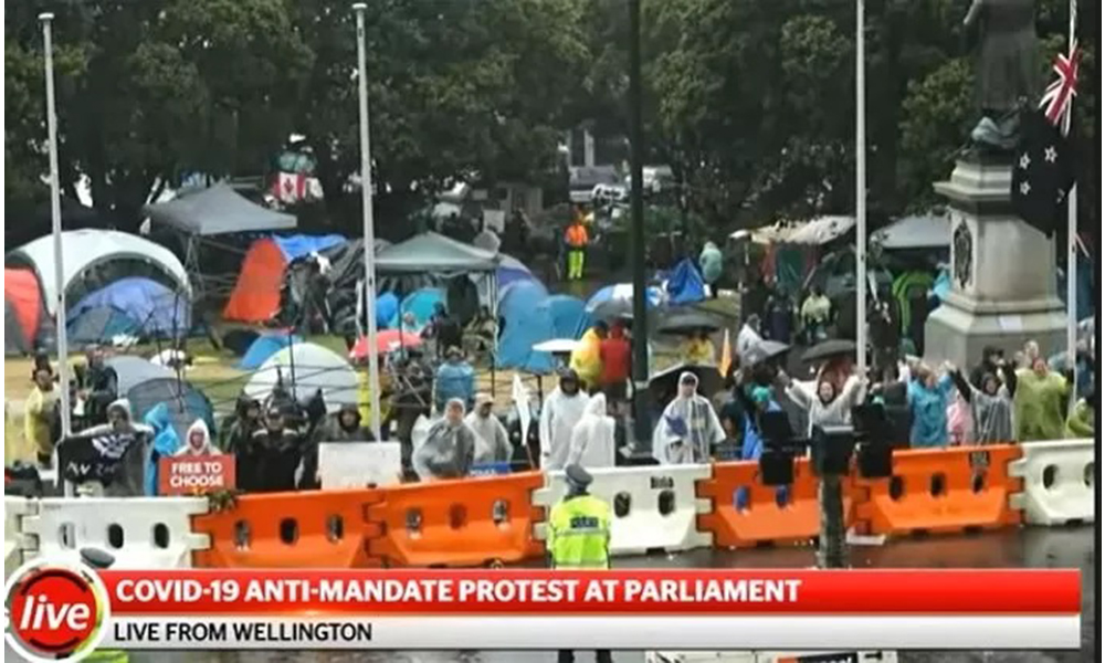 지난 8일 코로나19 규제에 반대하는 수백 명의 시위대가 수도 웰링턴 국회 앞 잔디 광장을 점거했습니다.