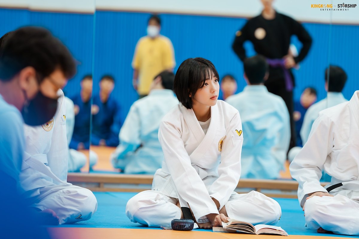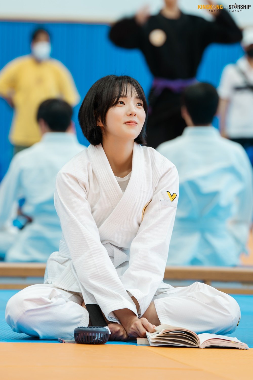사진 속 채수빈은 짧은 단발머리에 유도복 차림 등으로 열심히 촬영에 임하고 있는데요.