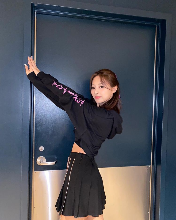이번에 공개된 사진에는 하트가 포인트로 들어간 크롭티에 주름미니스커트를 입고 발랄한 포즈를 취하고 있는 쯔위의 모습이 담겨 있다.