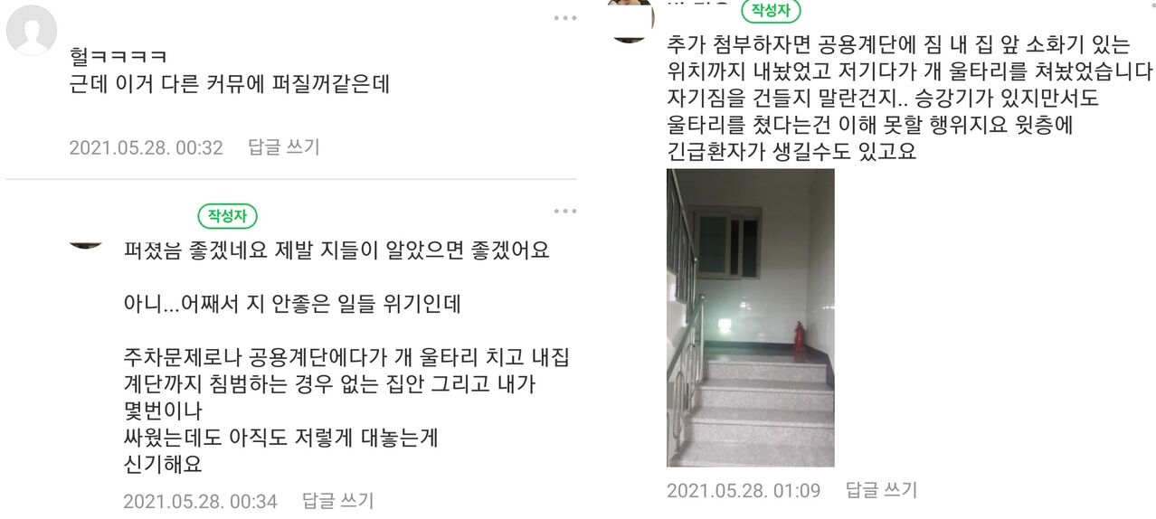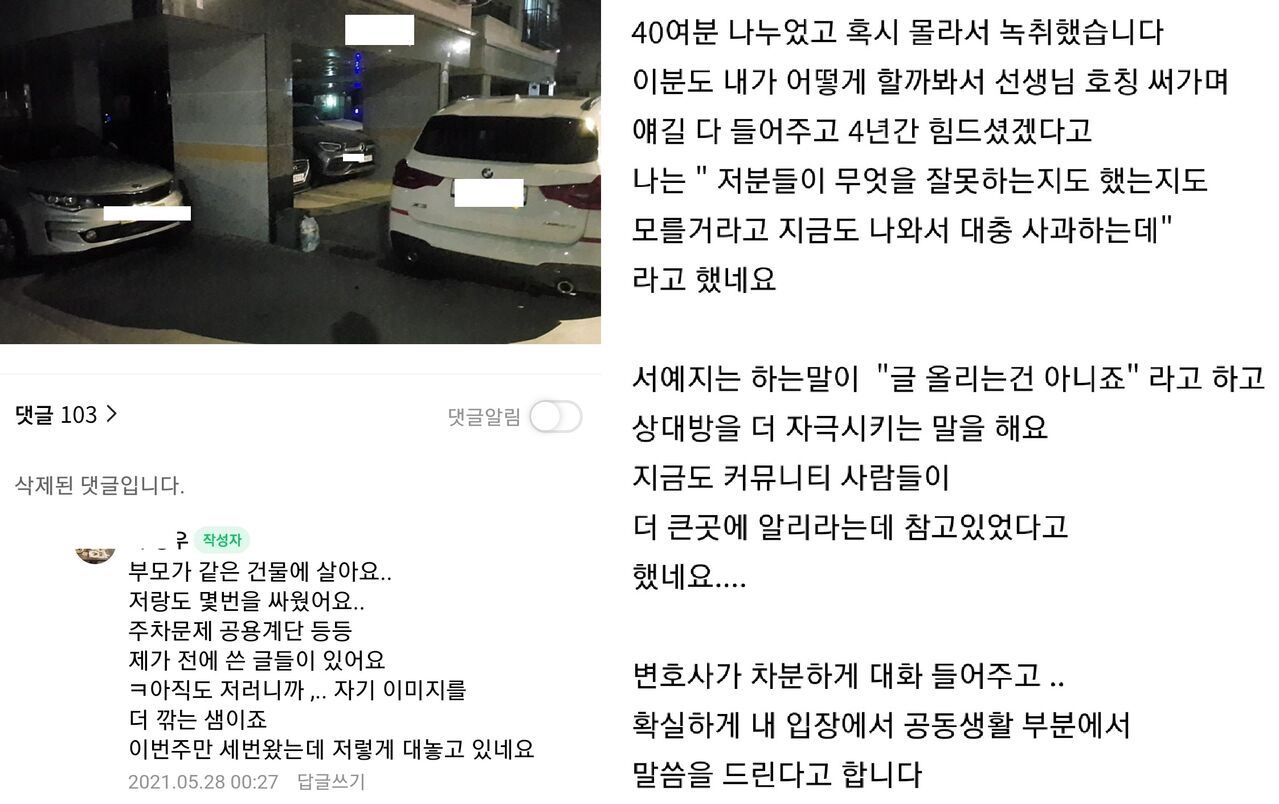 서예지의 부모와 같은 빌라에 살고 있다는 A씨는 지난해 5월 한 온라인 커뮤니티에 글을 올려 서예지 가족과 주차, 공용계단에 짐 적치 등의 문제로 고통 받고 있다고 호소했습니다.
