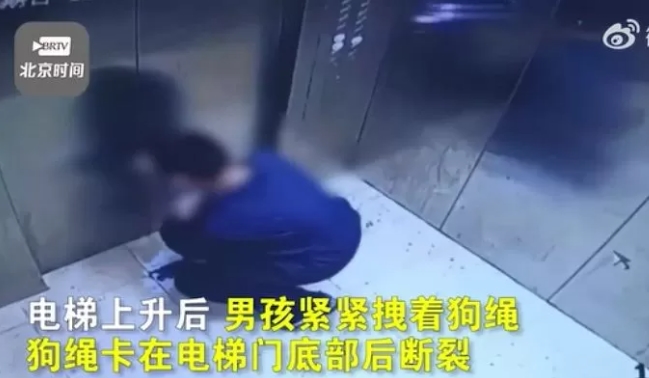 이후 소년은 엘리베이터가 작동하자 문에 줄이 껴 강아지 목줄이 팽팽해지는 상황에서도 끝까지 목줄을 손에 쥐고 놓지 않았습니다.