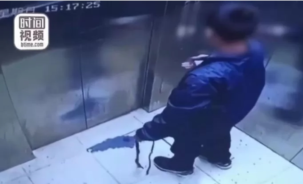 문제는 이 소년이 강아지와 함께 엘리베이터에 탑승 하였다가 무슨 이유에서인지 강아지를 엘레베이터 밖으로 내보낸 뒤 엘리베이터 문을 닫아버렸습니다.