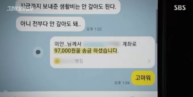 친구가 10만원을 입금하고 갚지 않아도 된다고 하였지만 윤씨는 3천원을 제외한 9만7천원을 다시 친구에게 입금하며 미안하다고해 안타까움을 사기도 하였습니다.