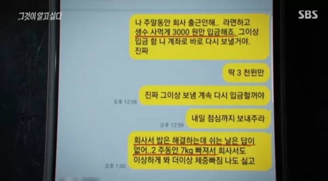 메시지 속 대화를 살펴보면 남편 윤씨가 극심한 생활고에 시달린것으로 보이는데요.