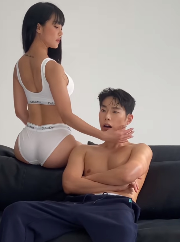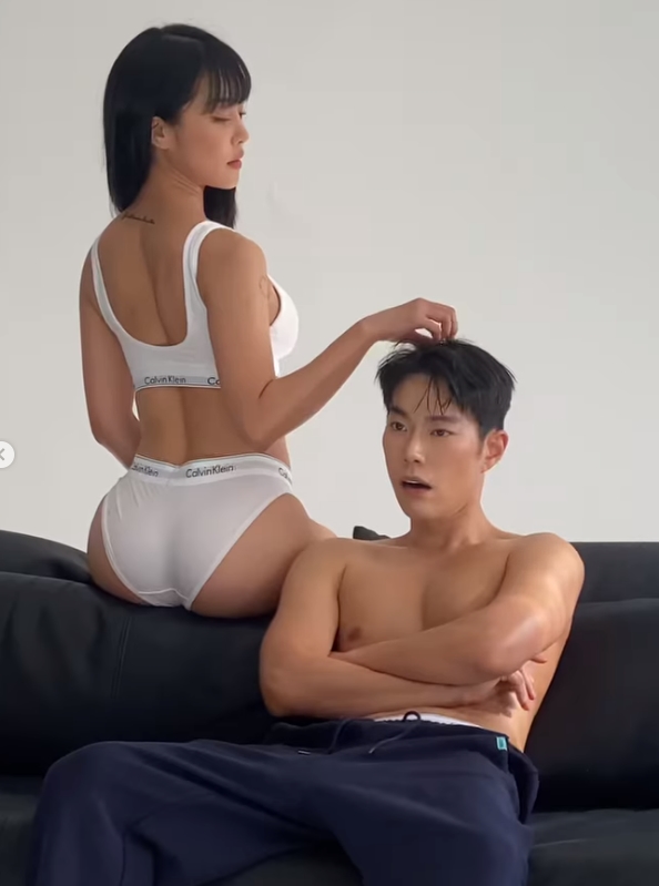 흰색 속옷 차림의 랄랄과 상의를 탈의한 레오제이의 화끈한 수위의 모습이 담겨있었습니다.