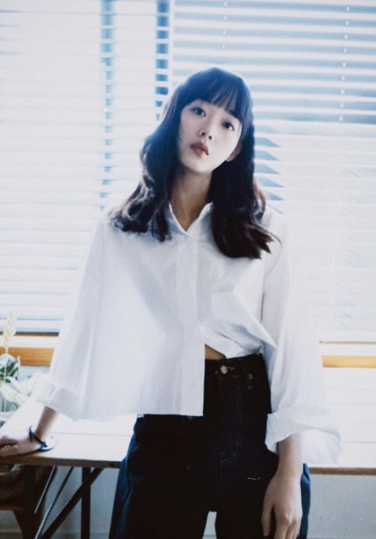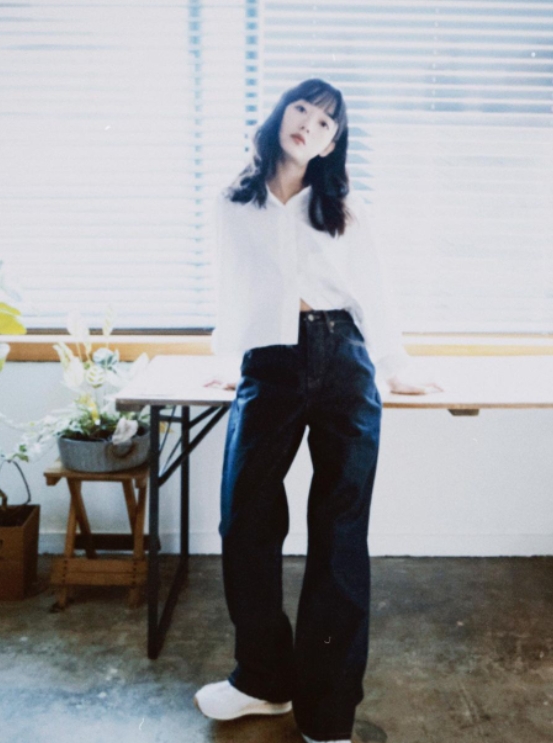 공개된 사진속 이유미는 진청에 화이트 셔츠를 매치한 채 포즈를 취한 모습이었습니다.