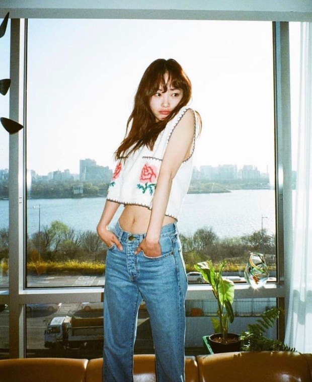 공개된 사진속 이유미는 진청에 화이트 셔츠를 매치한 채 포즈를 취한 모습이었습니다.