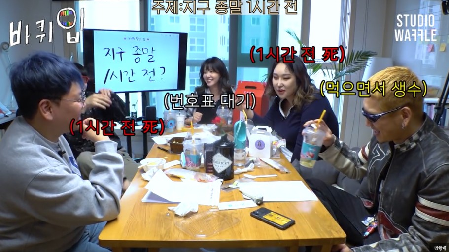 이날 공개된 방송 말미에 출연자들은 지구 종말 1시간 전이란 주제로 대화를 나눴는데요.