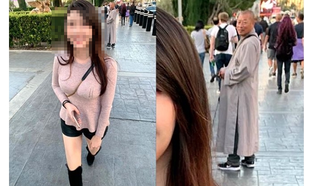 사진을 자세히 보면 거리를 걷는 여성 뒤로 스님 한명이 서있는 모습을 볼 수 있는데요.