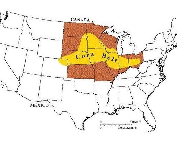 미국 아이오와. 일리노이. 인디애나. 미시간. 미주리주 등 미국의 중서부 지역에 걸쳐 있는 곡창지대인 콘벨트에서 전 세계 생산량의 36%, 수출량의 44%가 생산되고 있다고 합니다.