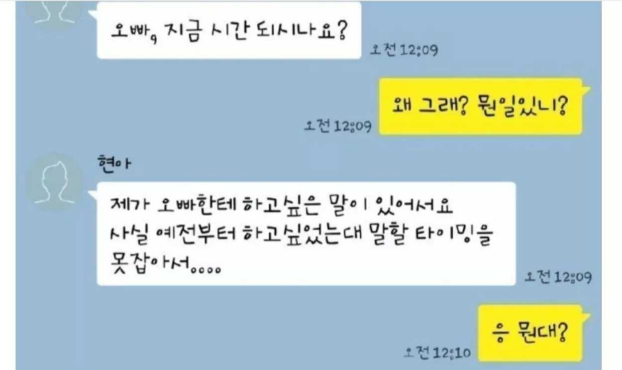 늦은 밤 썸타던 여자 후배에게 카톡이 왔습니다.