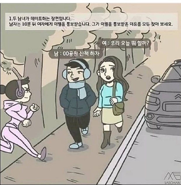 남녀가 데이트하는데 10분 뒤 여자에게 이별통보를 받은 이유는 뭘까요??
