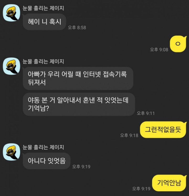 누나가 남동생에게 카톡을 보내 어린시절 기억을 물어봄...
