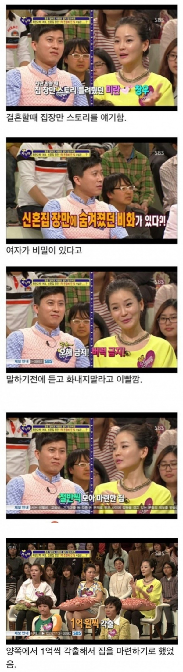 예능 프로에 한 부부가 출연하여 집 장만 스토리를 들려주었습니다.