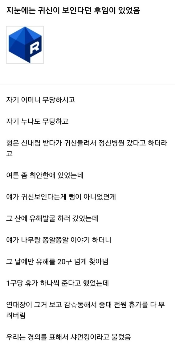 글쓴이는 군대복무 중 귀신을 보는 후임이 들어왔다고 했는데요.