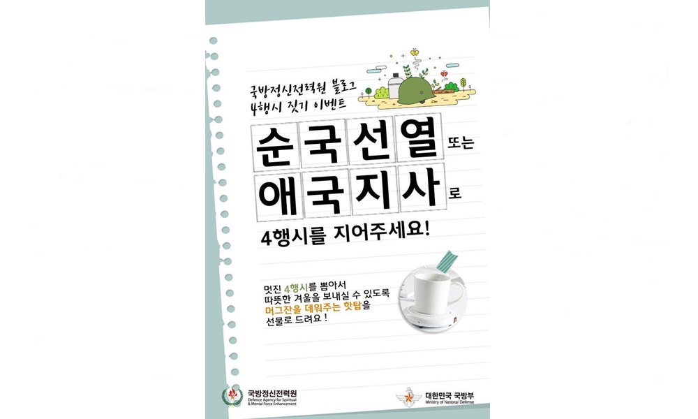 국방부에서 순국선열, 애국지사로 4행시 짓기 이벤트를 하였음