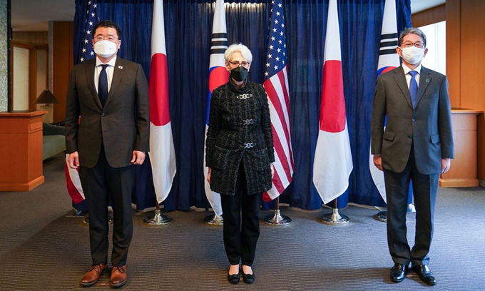 한·미·일 외교현장에서 불협화음이 연출된 것은 일본의 독도 영유권 외교전이 새로운 단계에 진입했음을 보여준다. 아베 정권, 스가 요시히데(菅義偉) 정권에서도 북한 핵·미사일 문제와 관련해서는 한·미·일 공조가 강조됐으나, 이번에는 일본 정부가 그동안 주장해온 3국 안보협력의 당위성을 무색하게 하는 사건이 벌어졌다.
