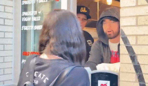 현지 시간 1일 미국 ABC7 방송 등 외신은 지난달 29일 한 스파게티 레스토랑 개업식에 나타나 서빙하는 에미넴의 근황을 보도했습니다.