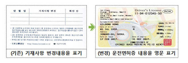 영문운전면허증은 전국 27개 운전면허시험장 및 경찰서 민원실(강남경찰서 제외), 안전운전 통합민원 홈페이지에서 신청할 수 있다. 수수료는 적성검사 신청 시 1만5000원, 신규ㆍ갱신ㆍ재발급 신청 시 1만원이다.