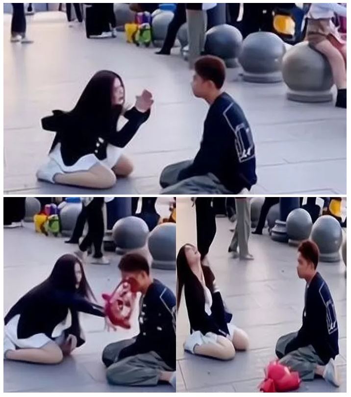 중국 대낮의 도심 길거리에서 한 여성은 무릎을 꿇고 남성에게 울며 애원하는 장면이 포착되어 화재가 되었다.