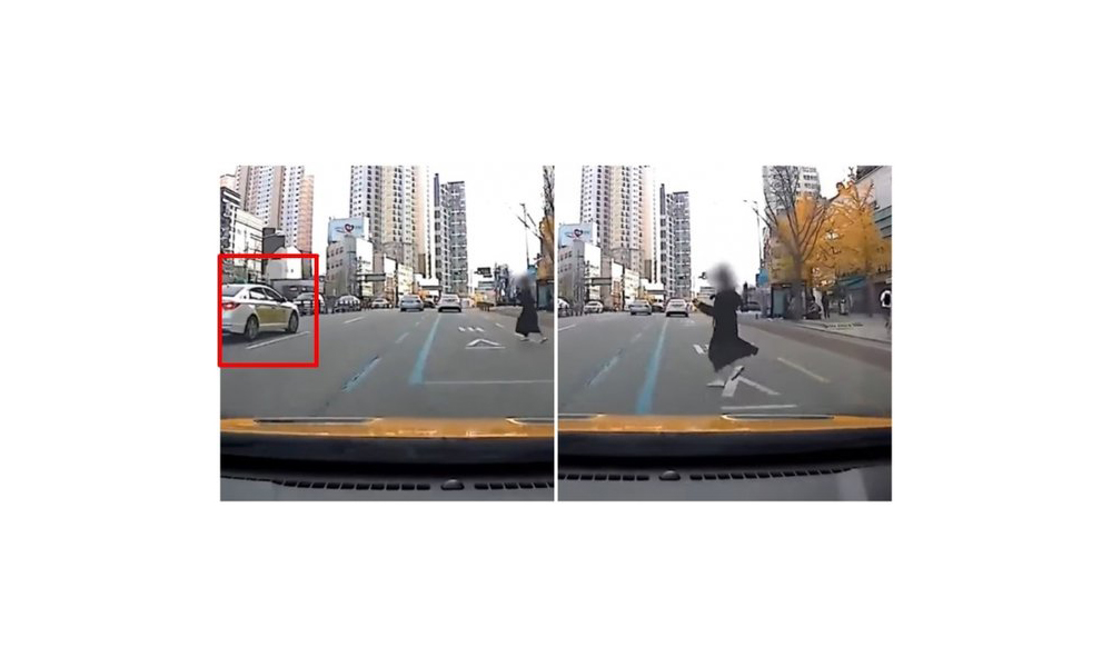 영상 제보자는 주행하다 갑자기 도로 쪽으로 달려든 보행자와 부딪혔다. 보행자는 1차로에 있던 택시를 타려고 했던 것으로 알려졌다.