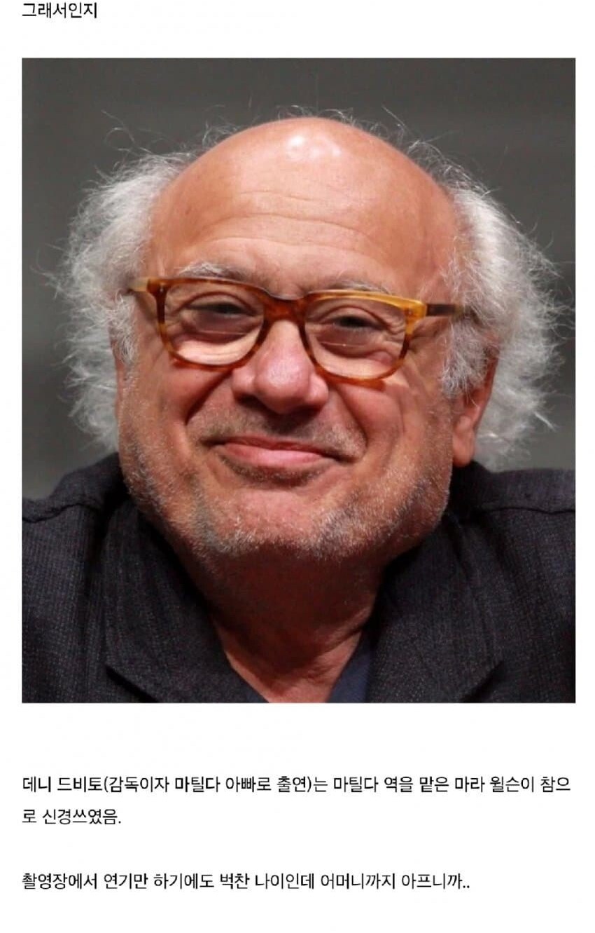출연 마틸다 윌우드(마라 윌슨) / 해리 윌우드(대니 드비로) / 레아 펄만(지니아 윌우드)
