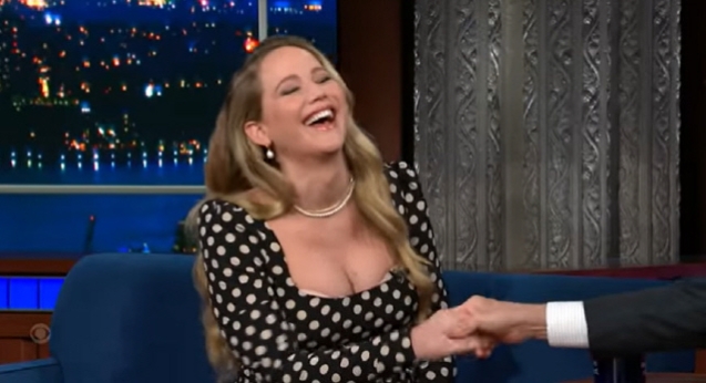 제니퍼 로렌스는 지난 6일(현지시간) 스테판 콜베어의 '더 레이트 쇼'에 출연해 3년간의 연기 공백 기간 동안 남편 쿡 마로니와 침실에서 매우 분주한 시간을 보냈다고 말했다.