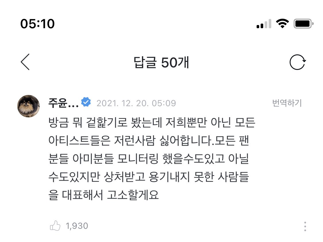 그러면서 "방금 뭐 겉핥기로 봤는데 저희뿐만 아니라 모든 아티스트들은 저런 사람 싫어합니다. 모든 팬분들 아미분들 모니터링 했을 수도 있고 아닐 수도 있지만 상처받고 용기 내지 못한 사람들을 대표해서 고소할게요"라고 말했다.