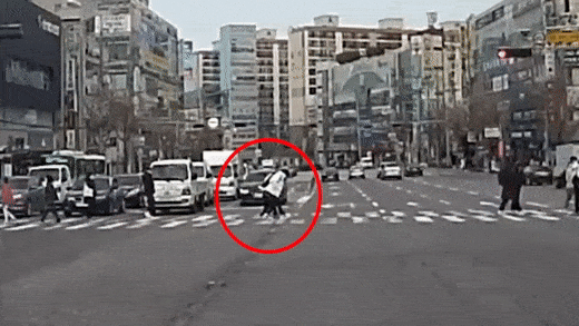 공개된 영상을 보면 보행자 신호가 켜지자 사람들은 분주하게 길을 건너기 시작한다. 사람들 사이로 남들보다 느리게 걷는 할머니의 모습이 보인다.