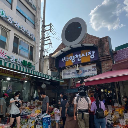 영천시장은 서울 서대문구에 위치하고 있으며, 전철로는 3호선 독립문 역 2번출구와 가깝습니다.