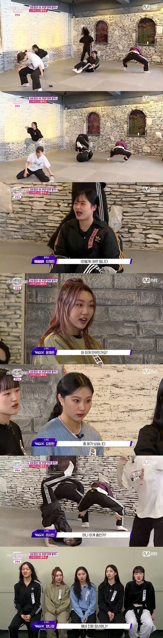 28일 오후 방송된 Mnet '스트릿댄스 걸스 파이터'(이하 '스걸파')에서는 12개 크루가 3차 미션인 'K-POP 안무 창작 미션’을 시작했다. 그중 스퀴드(팀 YGX)와 클루씨(팀 라치카)가 가장 마지막으로 나섰다.