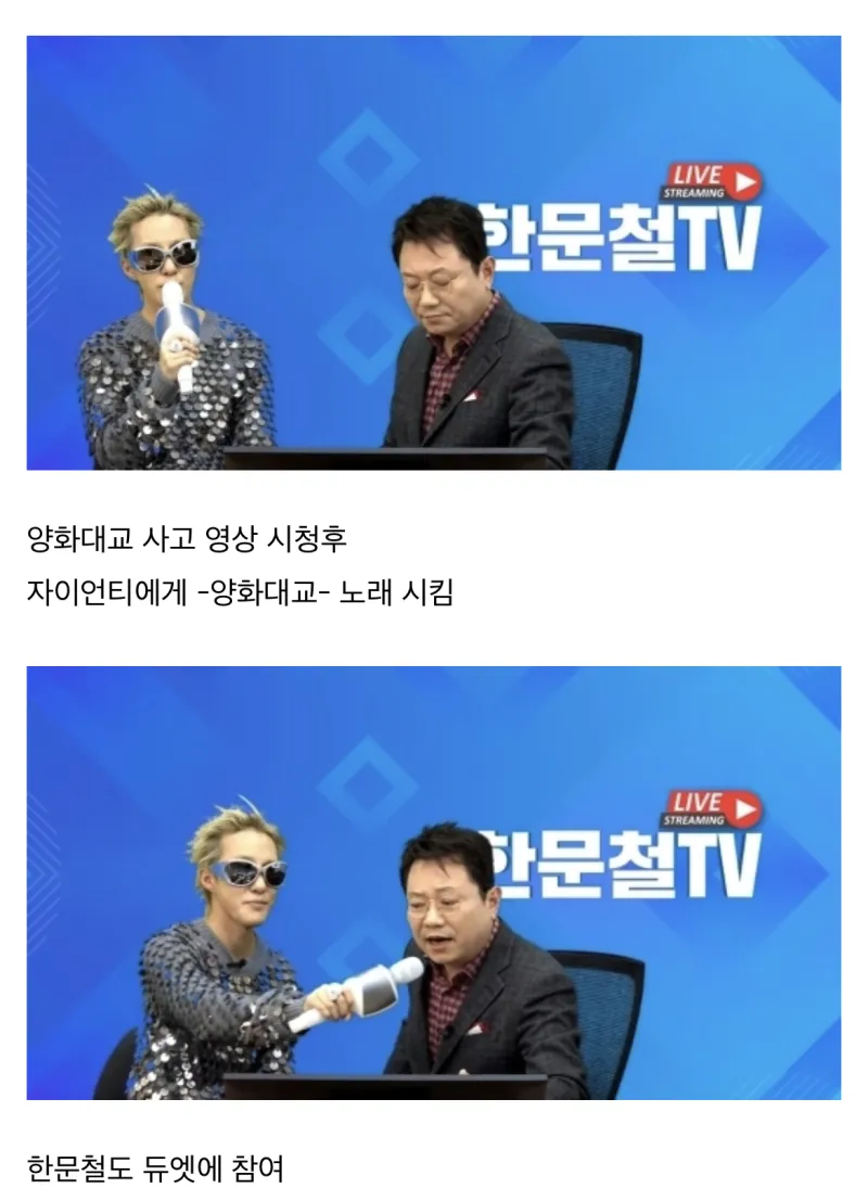 다음에 있을 공연에서 한문철 변호사와 합동 무대를 꾸미겠다고 약속함.