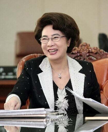 단상에 오른 황슬 / 황설 / 황솔 / 황밀 자매 가운데 첫째 슬이가 가천 길재단 이길여 회장 앞에서