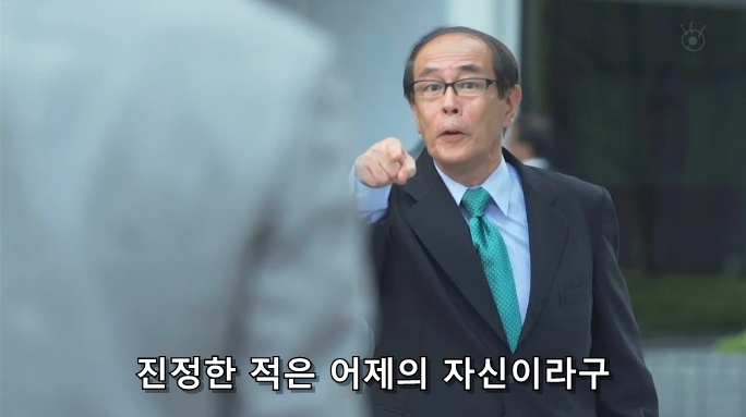 "진정한 적은 라이벌이 아니라 어제의 자신이야" 라고 말하며 (세번째 명언 등장)
