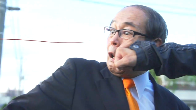 어기없이 부하직원과 함께 영업을 하러가는 남자