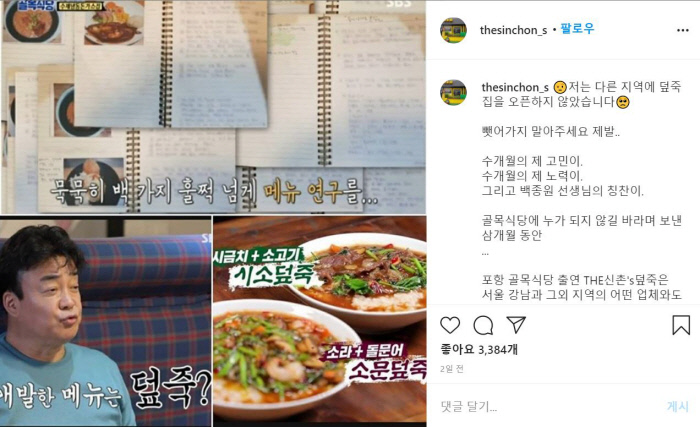 SBS 예능프로그램 '백종원의 골목식당'에 출연했던 경북 포항 덮죽집 사장 최모씨가 지난 2020년 8월 4일 '시소덮죽'과 '소문덮죽' 등 3건의 표장을 출원해 지난해 6월 1일 공고 결정을 받았으나 그보다 약 2주 전인 2020년 7월 같은 표장을 출원한 이모씨가 이의신청을 해 정식 등록은 하지 못했다.