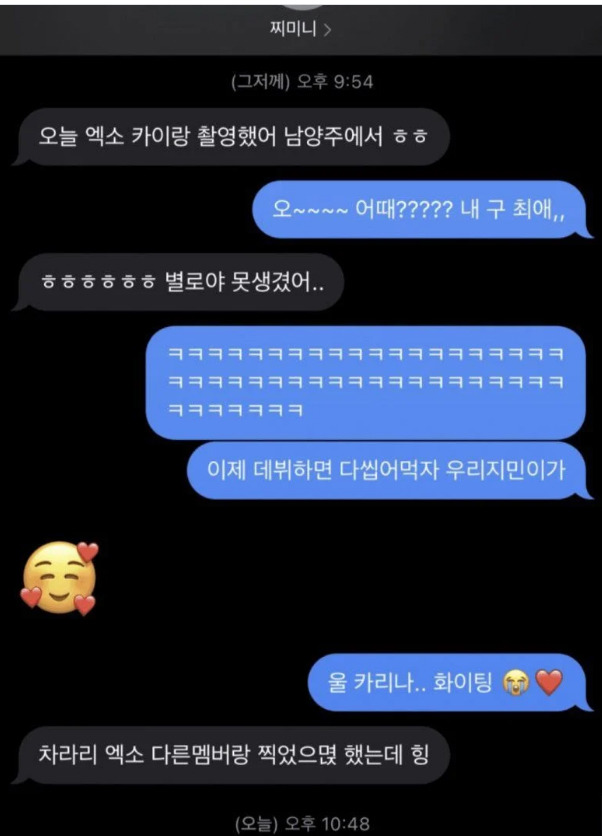 다른회사에서 DM으로 연락이 와서 연락이 와서 카메라 테스트까지 받은 상태였는데 그 캐스팅 담당자가 얼마 뒤 회사를 그만두게 되어 오갈 데 없이 난처한 상황이었는데, 그 후에 SM에서도 DM으로 제의가 와서 입사를 하게 되었다고 한다.