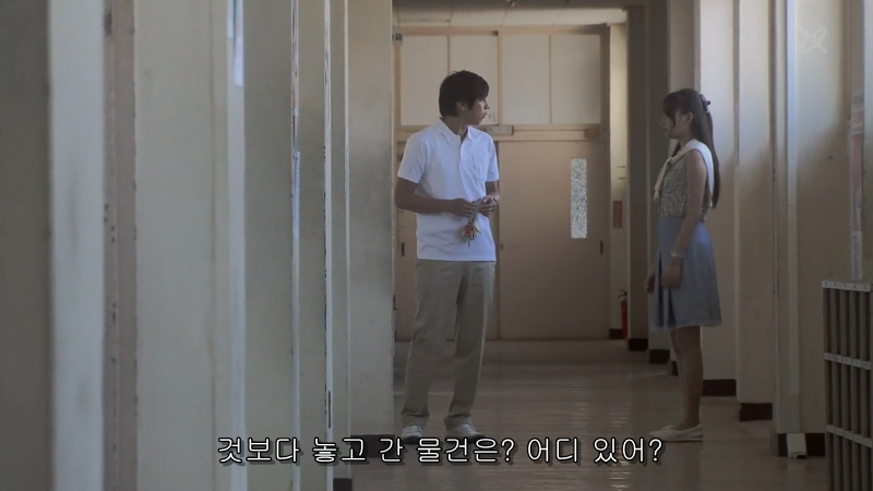 다시 학교 안으로 돌아와 높고 간 물건을 찾으러 가는 두사람.