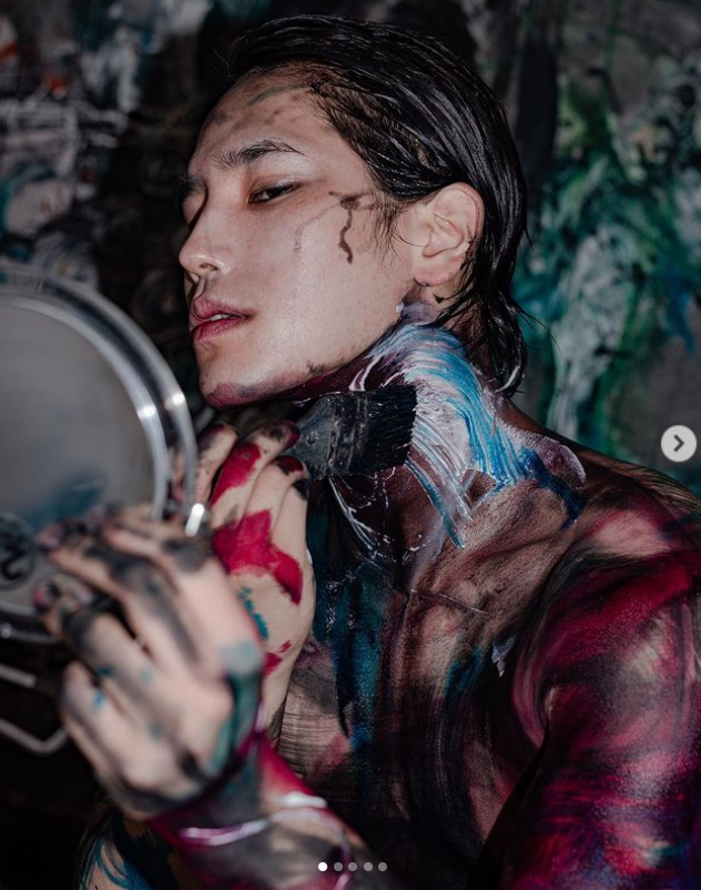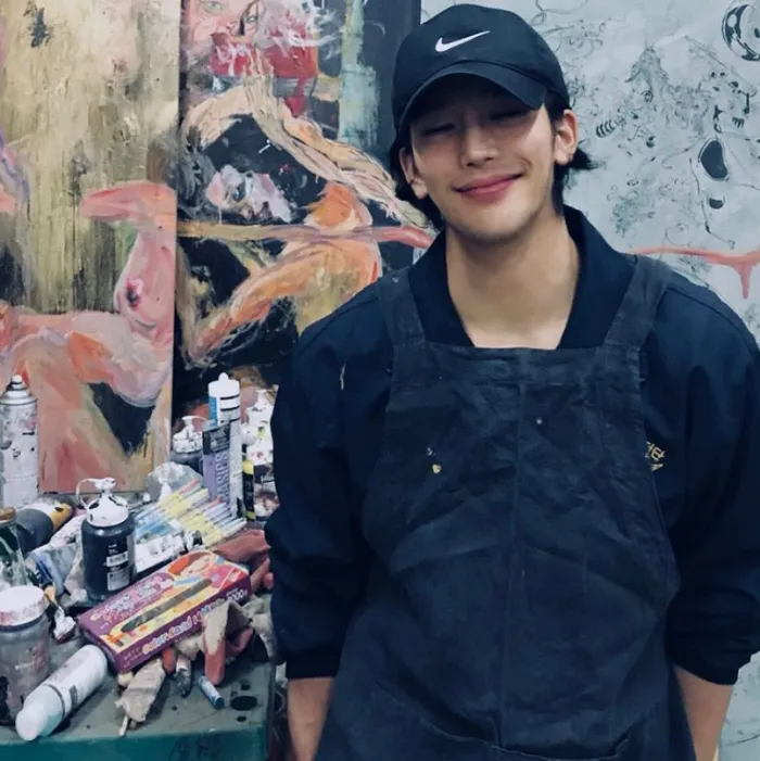 육준서는 입대 전 '무신사'모델로도 잠시 활동했으며,전역 후 개인 전시회를 여는 등 화가로 활동을 하고있었는데요, 그는 캔버스 대신 벽면, 공간 전체를 휘감는 작업을 주로 한다고 합니다.