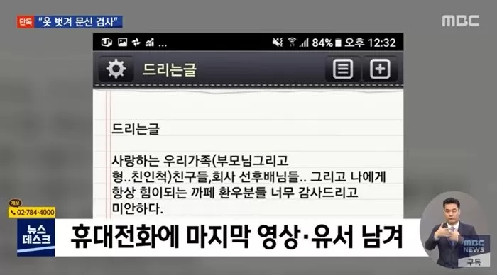 당시 함께 발견된 휴대전화에는 마지막 순간을 촬영한 25분 분량 영상과 ‘드리는 글’이란 제목의 유서가 있었다.