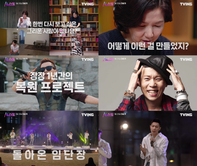 AI를 이용한 음악 프로그램 '얼라이브' 에서는 울랄라세션 임윤택의 모습을 담기위해, 장장 1년에 걸친 대형 프로젝트작업을 진행하였다고 합니다. 예고편에는 고도의 기술로 완성한 AI 임윤택이 울랄라세션 동료들과 함께 '서쪽하늘'을 열창하는 모습이 공개되었는데요, 이를 본 그의 동료들과 가족들까지 놀라워 했습니다. 오랜만에 보고 듣는 임윤택의 목소리에 많은 이들이 눈물을 흘렸다고 합니다. 이번 방송에선 울랄라세션의 완전체 무대와 임윤택의 미공개 신곡까지 볼 수 있다고합니다. '얼라이브'는 28일부터 티빙에서 시청할수 있다고 합니다.