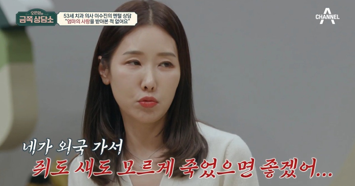 치과의사 이수진이 '오은영의 금쪽상담소' 출연 후 어머니로부터 욕설과 협박 연락을 받았다고 밝혔다.