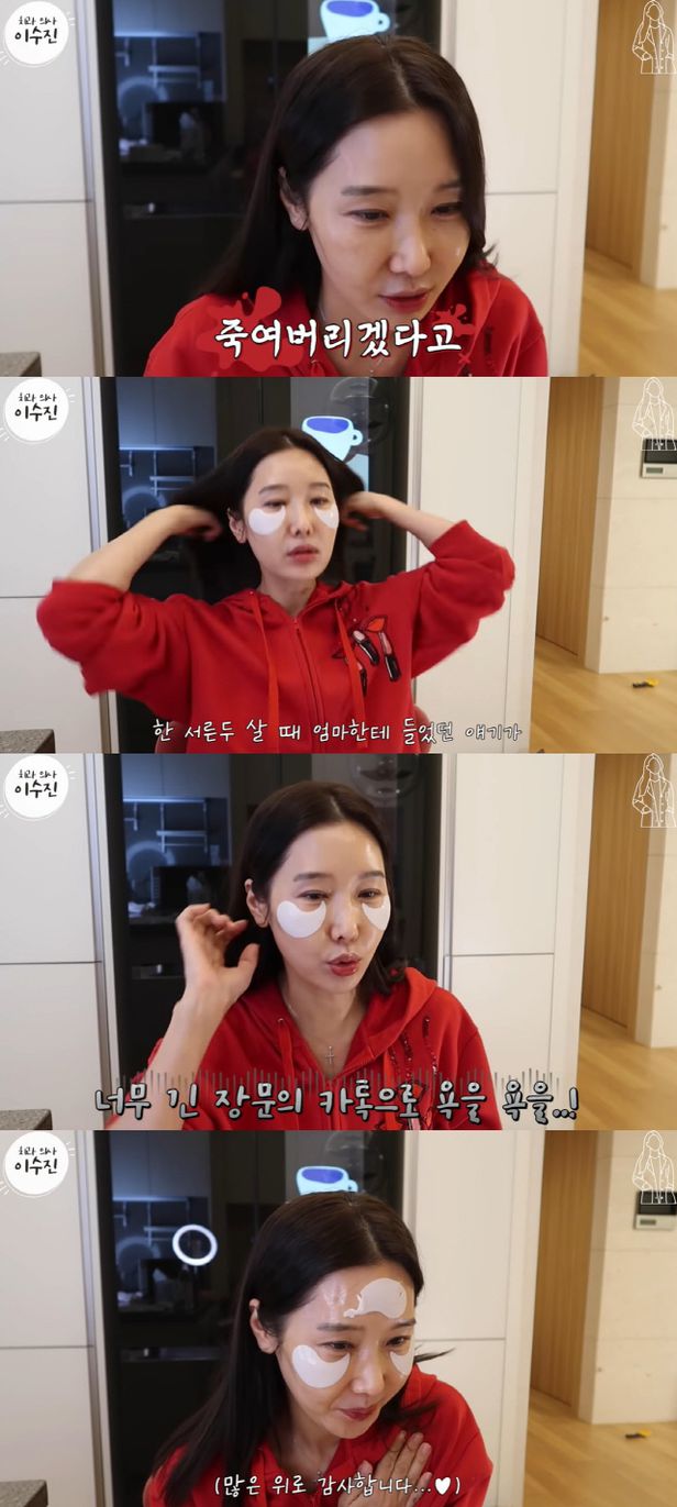 이수진은 "이번 일로 엄마가 충격받아서 어떻게 될까 걱정했는데 카톡으로 욕을, 욕을. 힘도 좋아. 어떻게 그렇게 긴 장문의 글을 쓸 수 있을까. 다행이라고 생각한다"고 말했다.