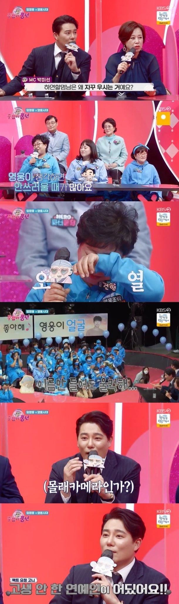 이날 '영웅시대'의 대표로 출연한 팬카페 닉네임 '하연할멈'은 임영웅의 얘기만 나오면 자꾸 눈물을 흘렸다.
