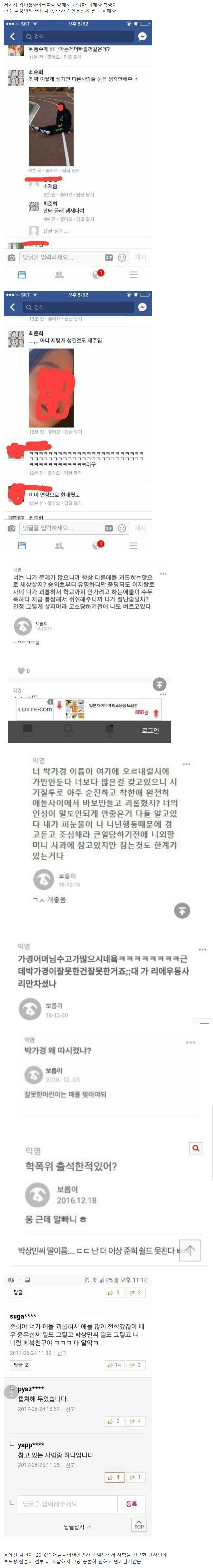 지난 2016년 최준희는 같은 중학교에 다니던 가수 박상민의 딸 A양을 따돌림 시켰다는 의혹이 제기됐습니다. 그는 당시 SNS에 A양의 사진을 게재하며 “이렇게 생긴 것도 재주다”, “이렇게 생기면 다른 사람의 눈은 생각 안 해주나”, “냄새나게 생겼다”, “머리에 우동 사리만 찼다”는 등 도 넘은 인격 모독과 외모 비난을 퍼부었습니다.