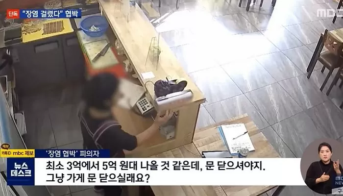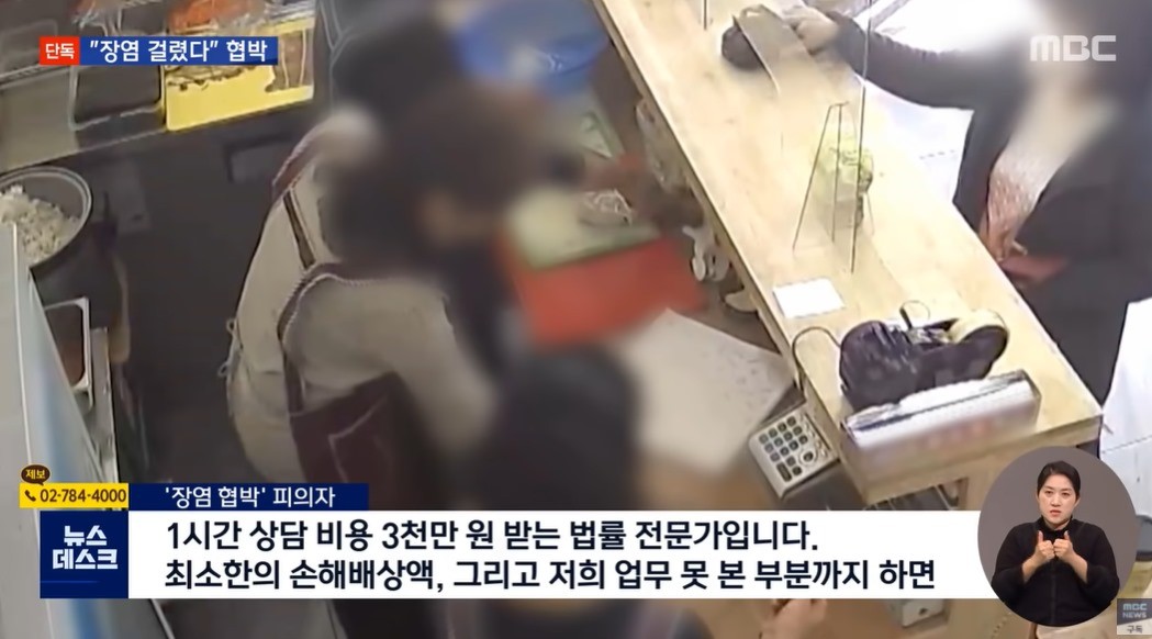 그는 "최소한의 손해배상액, 업무 못 본 부분까지 하면 최소 3억에서 5억 원대 나올 것 같은데 그냥 가게 문 닫으실래요?"라는 말로 주인을 협박했다.