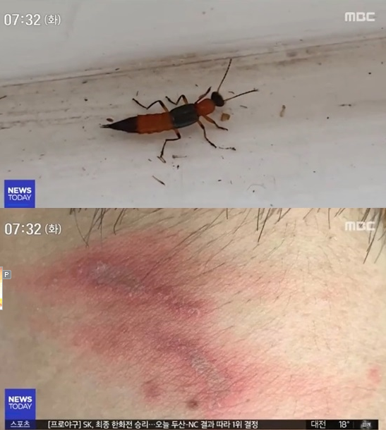 1일 MBC `뉴스데스크`에 따르면, 최근 전북 완주의 한 대학교 기숙사에서 `화상벌레`로 불리는 `청딱지개미반날개`가 발견됐다.